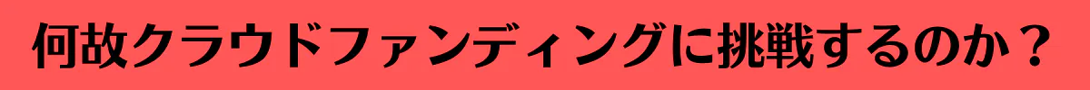 ・何故クラウドファンディングに挑戦するのか?