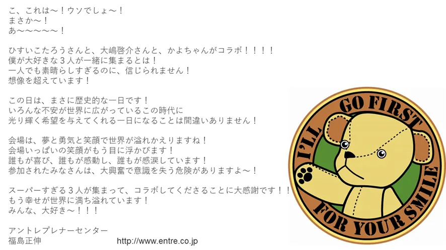 ひすいこたろうさん、大嶋啓介さんのファンも
