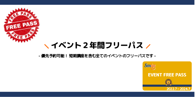 ・SMILEが主催する全イベント(短期講座含む)に2年間費用なしで参加できます!