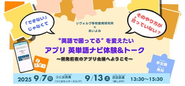 2025/08/31 22:03中学卒業までに900語程度とされていた英単語数は、今や2,500語を超えています。苦手な人ほど「何度も書いて…」とも言われますが、楽しくない練習は定着しづらいものです。 私たちは、長年子どもたちに英語を教える中で、その子がすでに身につけた知識を生かし、音韻的気づきなどさまざまな気づきをうながすことで学び取る力そのものを伸長してきました。リヴォルヴならではの教え方は好評をいただいています。 そこで、私たちは、知っている単語を活かしながら自然に語彙力を伸ばせるアプリ「英単語ナビ」を開発しています。 【英単語ナビとは?】 英単語ナビとは、英語の単語を語根や接尾辞、接頭辞といったものに分けて検索することができるアプリです。 英単語の海の中を、アプリにナビゲートしてもらいながら進み、学んでいくことができます。一つの単語から、他の単語にどんどんつがなっていきます 英単語を“覚える”だけでなく、“意味のつながり”や“使い方”まで自然に身につくように設計された強力なツールです。◯ 英単語ナビの解説動画はこちらから【一足早くアプリを体験できるイベント】 そこで、現在開発中の 英単語ナビ をみなさんに体験してもらうイベントをつくば(9月7日)と渋谷(9月13日)の2会場で企画しました。 このイベントでは、英語につまずいた経験を持つ開発者とともにアプリを体験し、「英語で困ってる」を変える仲間を募ります。 英語に悩む中高生・大学生、保護者、そして「誰かの力になりたい」と思う方、ぜひご参加ください。あなたの声が、次の学びをつくります。 ★ 詳細・お申込みはこちら https://peatix.com/event/4505354/ もっと見る