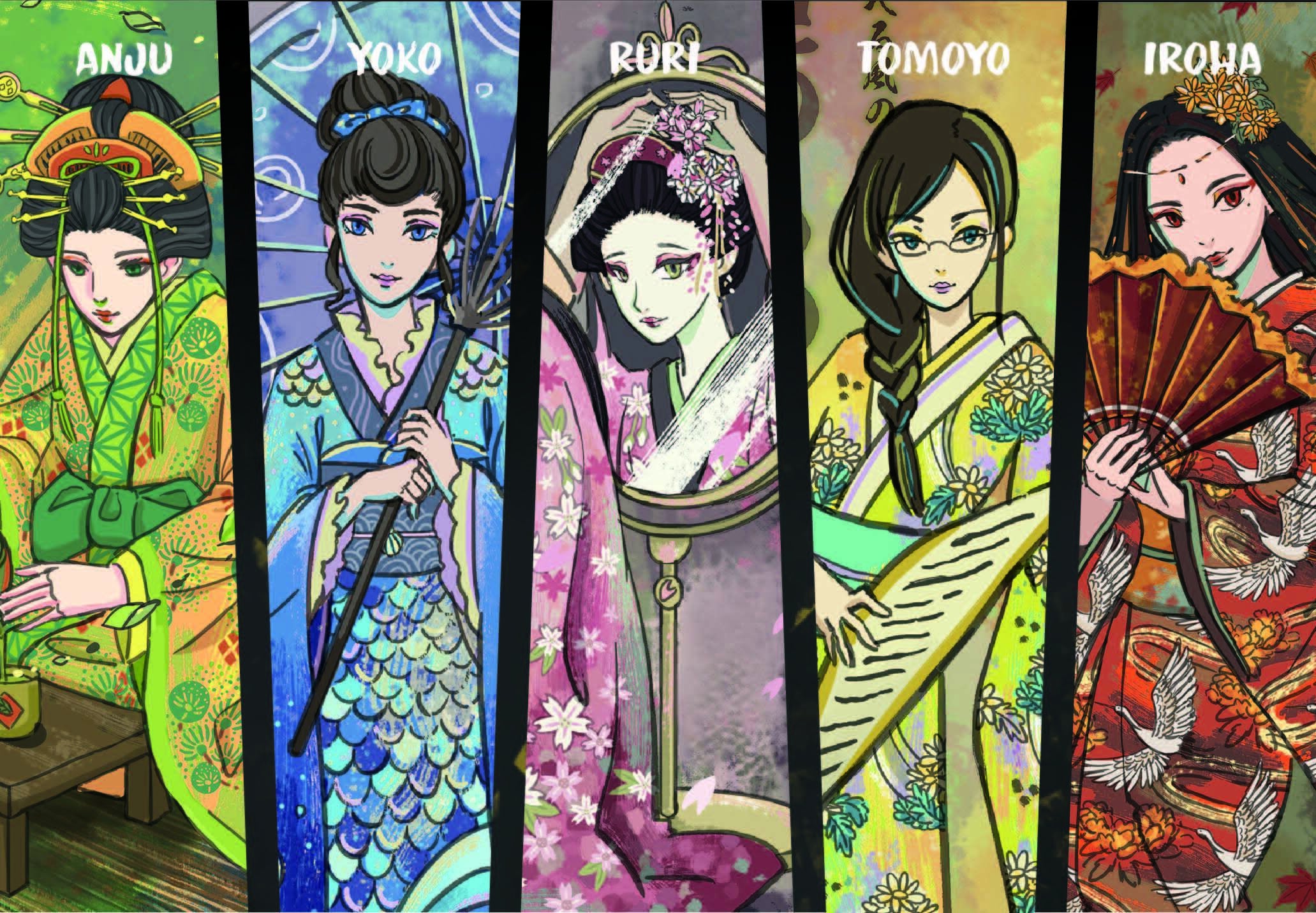 彩葉、知世、 杏樹、洋子、そして琉璃が見習いの舞妓から芸妓となり、やがて自身の茶屋を持つに至る芸者の道を歩む手助けをしましょう!