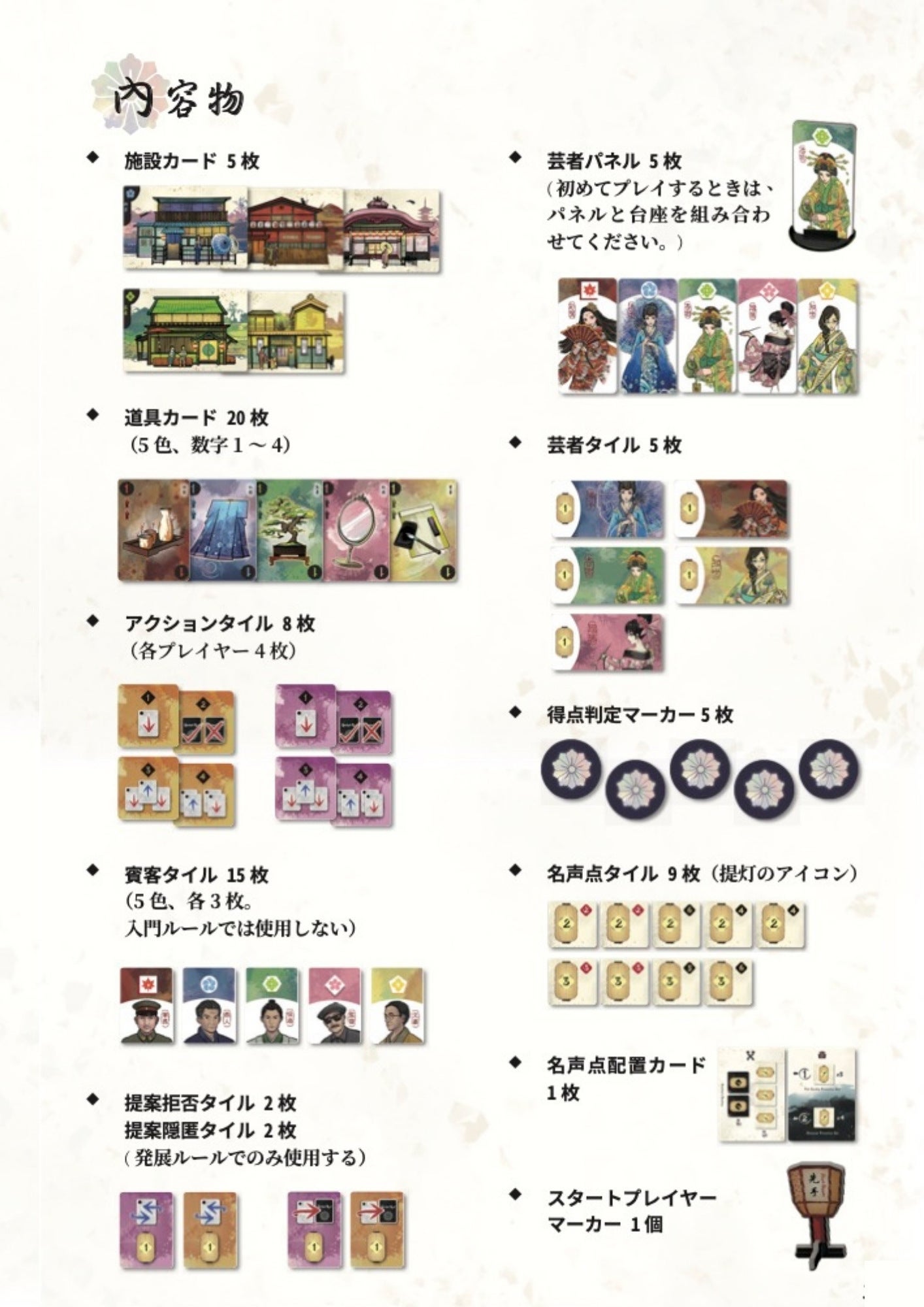 大人気『花見小路:芸妓の道』の内容物は以下の通りとなっております。