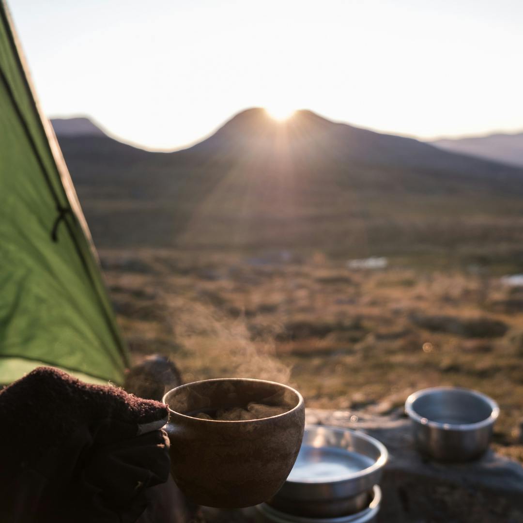 登山やハイクで肌寒い夜明け、モルゲンロートと絶景を前にいただくドリップコーヒーは格別です!