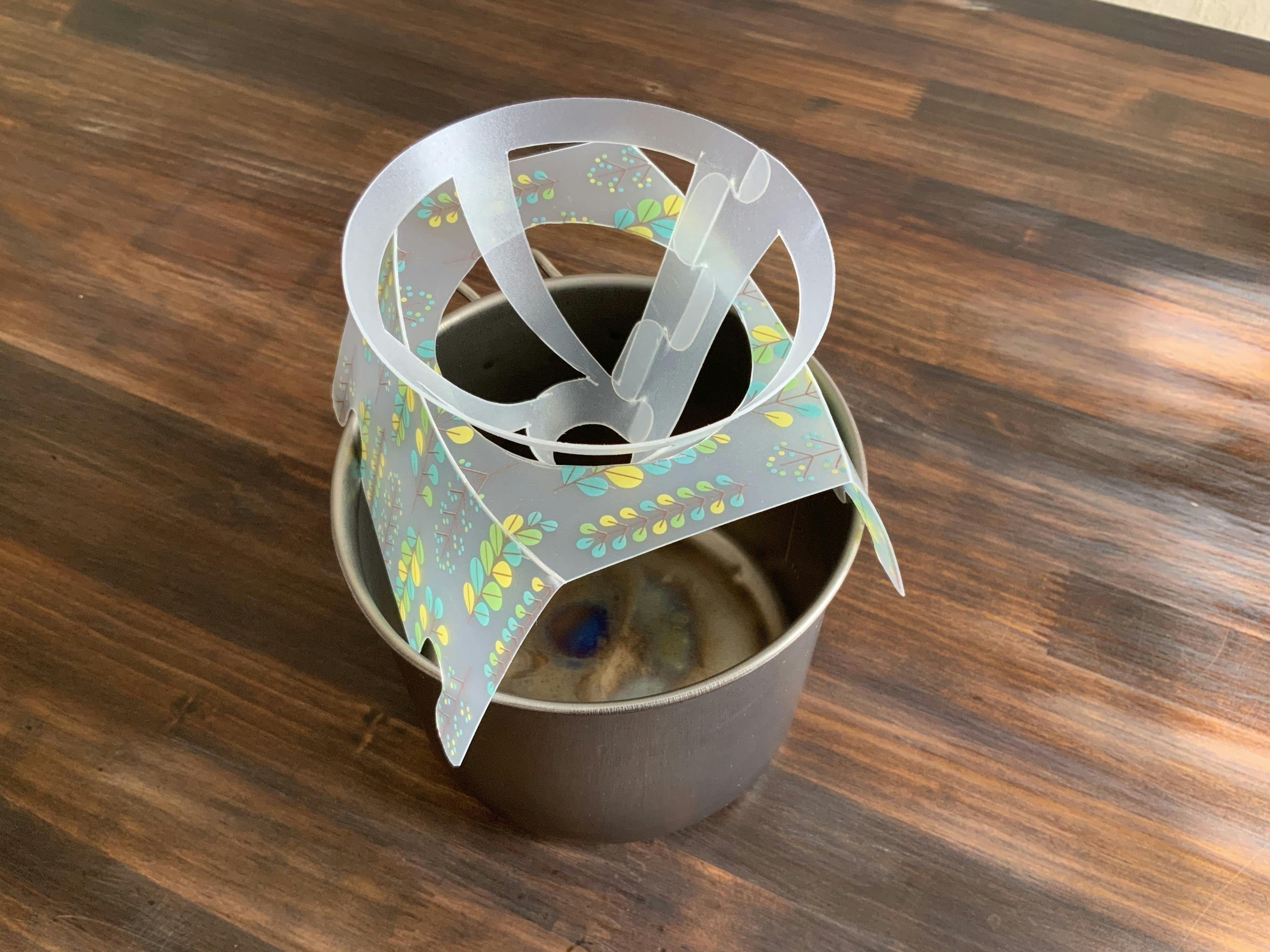 U.L.(ウルトラライト)的には贅沢品かもしれないギアが、極薄で超軽くクッカーの隙間に収まり、本格的なドリップコーヒーが抽出できる円錐型のコーヒードリッパーだったら?