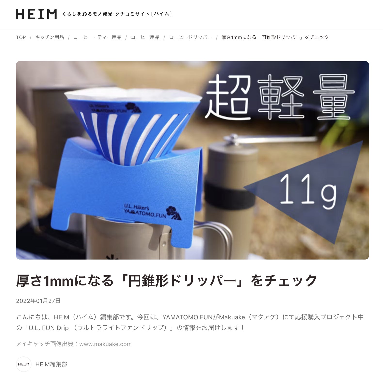 ● くらしを彩るモノ発見・比較サイト「HEIM(ハイム)」で【 U.L. FUN Drip 】が紹介されました。