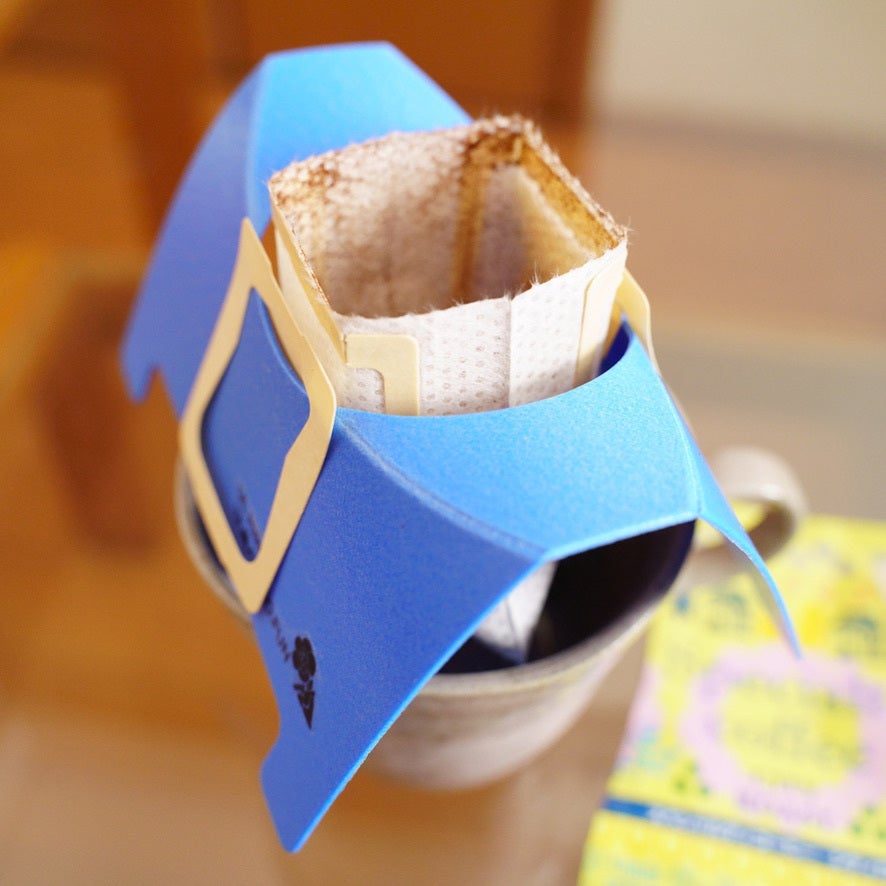 1杯分のドリップコーヒー、カップにセットすると高さが低く、抽出時にコーヒーが浸かってしまいます。U.L. FUN Dripのベースをスタンドとして使うと高さを確保でき、おいしいコーヒーが抽出できます。形もさまざまなタイプに対応できます。