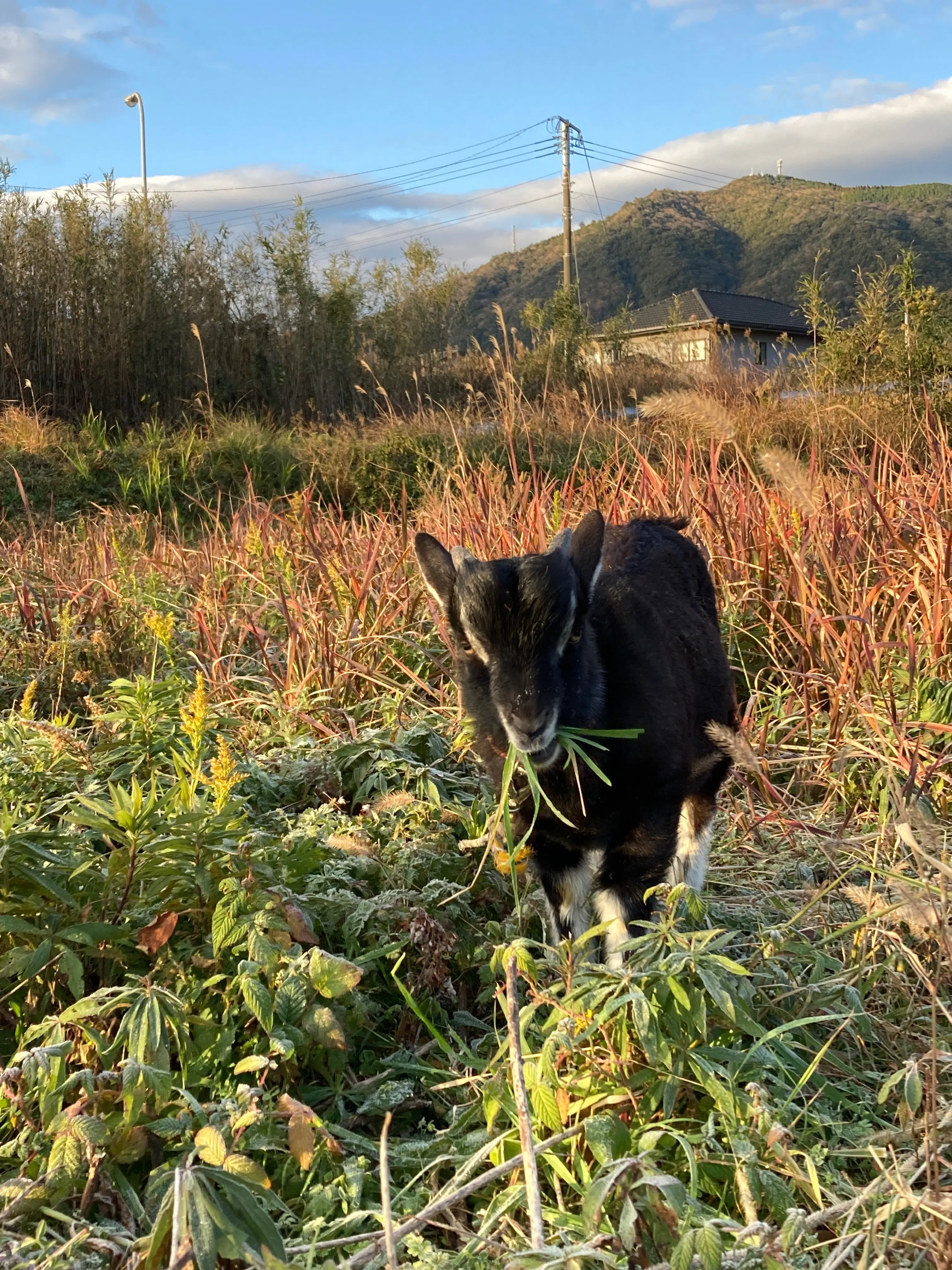 昨秋、草刈り?要員として、黒ヤギの「丹波黒豆」が仲間入りしました。
