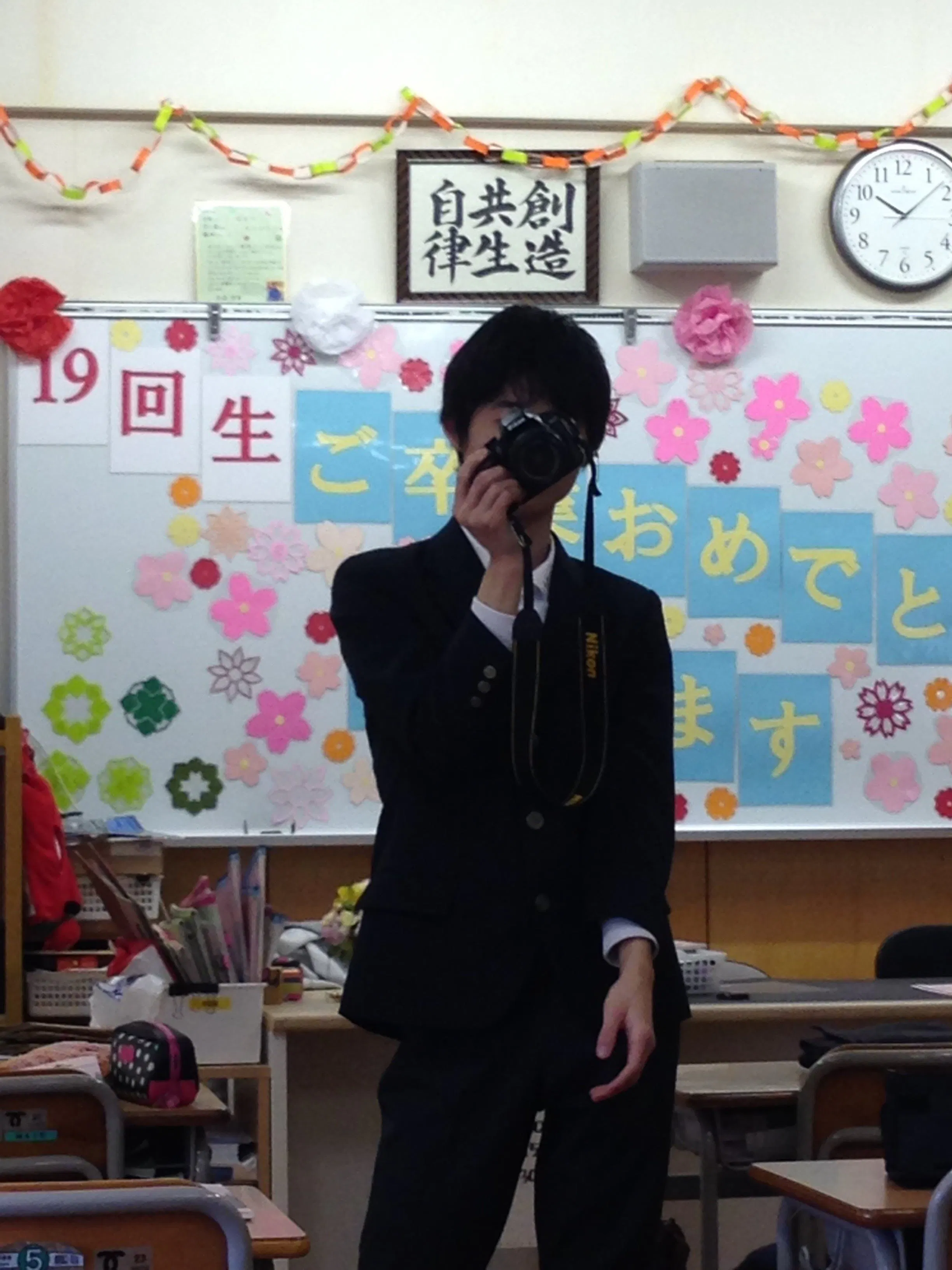 (息子の中学校卒業の日。朝8時から校長室で一人の卒業式をしていただきました)