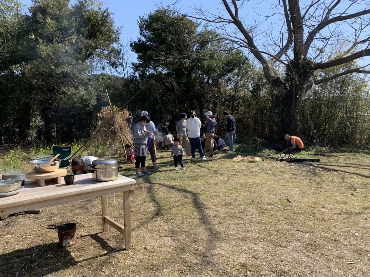 竈を作っていただき、羽釜ご飯を炊いたり、炭火で地元の魚を焼いて食べるようになると、薪や隣町で知り合いが生産している備長炭が増え、せっかくだからと、昔ながらの木製の蒸し器や唐箕も。