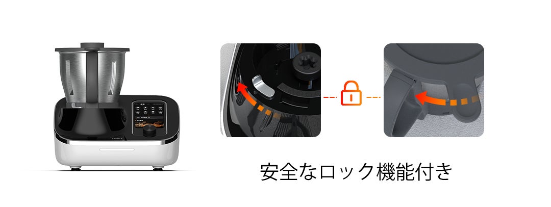 ボウル本体は、ホットプレートを介して食材を均一に加熱するように設計されています。さらに安全機能として、内蔵された蓋検知システムが、調理中の食材とあなたを、すべてがロックされてしっかりと固定されるまで保護します。