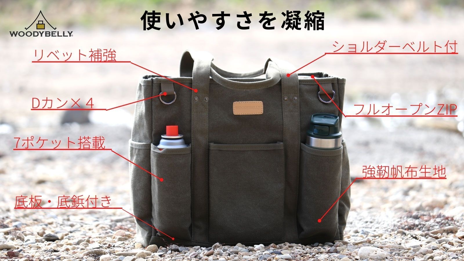 帆布バッグブランド「WOODYBELLY(ウッディベリー)は2007年に東京にてスタートしました。ビジネスバッグや普段使いのバッグを主に販売していましたが、「アウトドアでも使いやすいバッグを作って欲しい」とのご要望をお客様から多数いただくようになり、「実用性が高くお客様の役に立てるアウトドアバッグ」を追求したプロジェクトを立ち上げました。