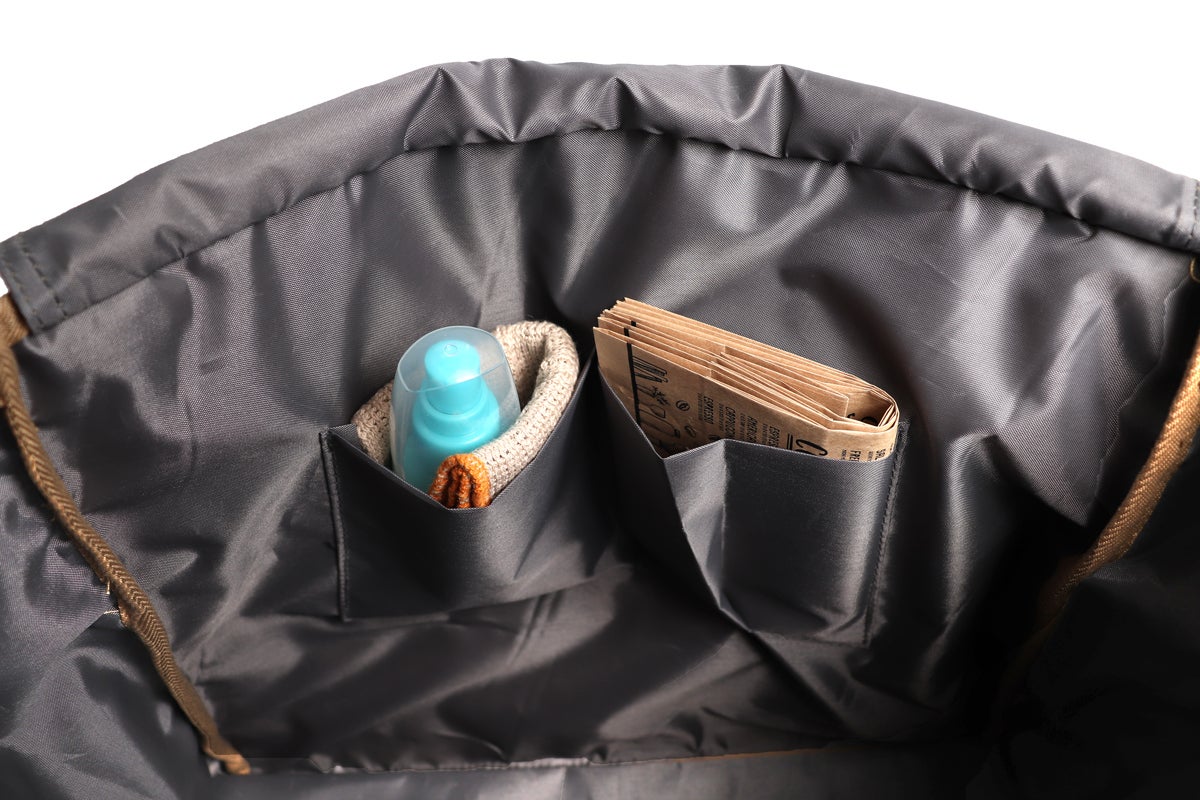 内生地は滑らかなポリエステル素材で物の出し入れがしやすく、かつ清潔感があります。