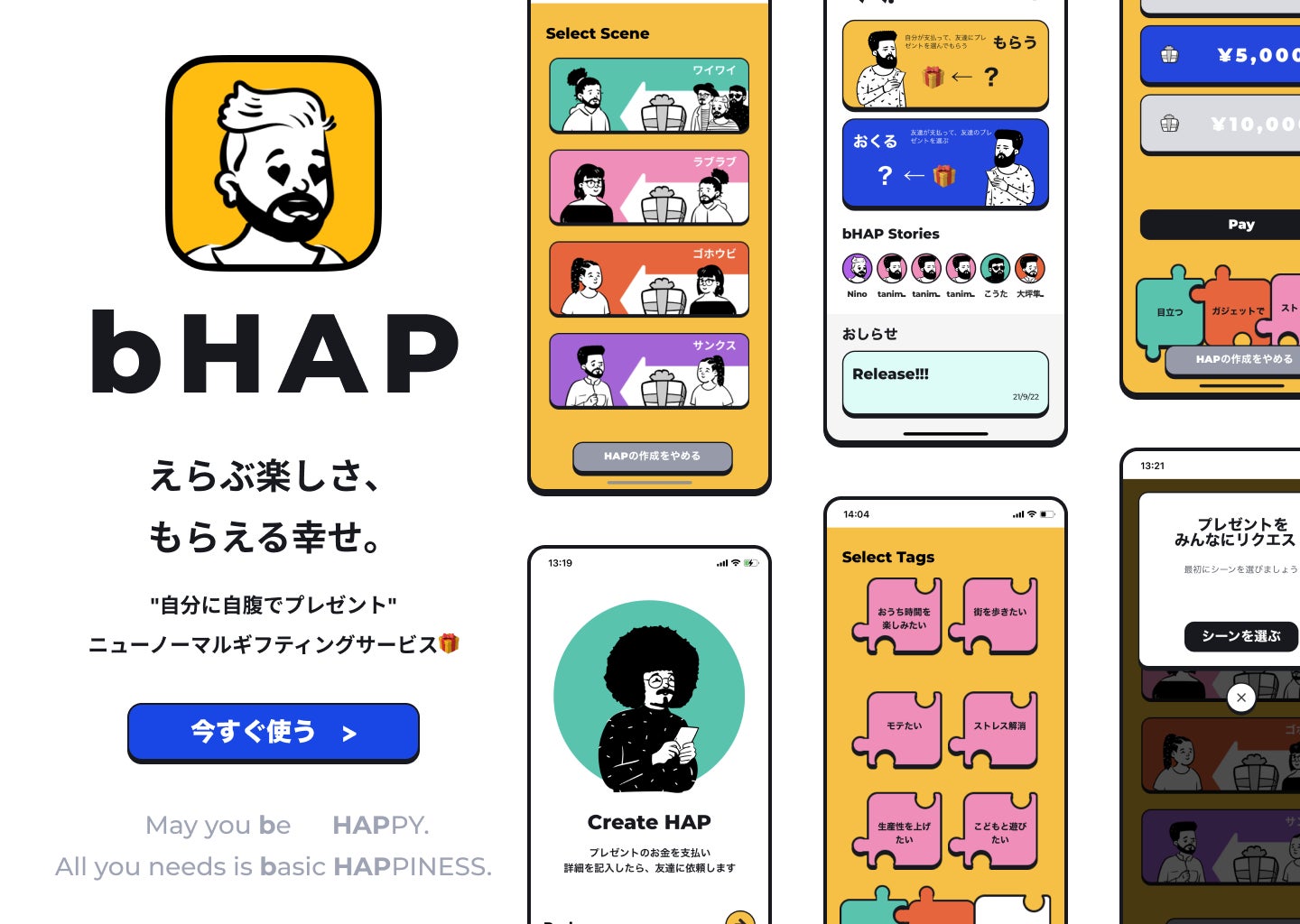 そこから約40時間、侃侃諤諤のディスカッションを重ね、辿り着いた一つのプロダクトが「bHAP(ビーハップ)」。ぼくらがその後半年心血を注ぐことになる「自腹でプレゼントサービス」です。