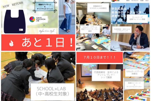 (株)TOKYO EDUCATION LABでは、"SDGs×教育旅行の推進活動”や"小学生でもわかるSDGs講演”のほか、学習指導要領改訂により「SDGs」「探究」「ポートフォリオ」をテーマに、中学校・高等学校で“起業プログラム”の運営を行っています。
