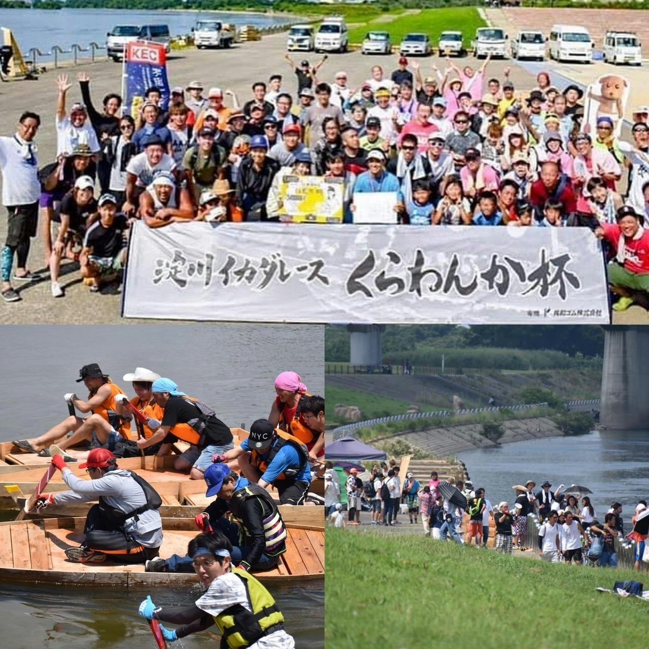 淀川にて大掛かりなイカダレースを開催。