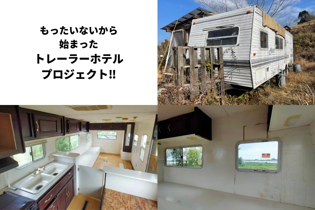 そんな悩みを抱えていた私達に、いつも応援してくださっている町民の方から、使わなくなったトレーラーのお声がけがありました。見に行ってみるとびっくり!使っていないのがもったいないくらい素敵なトレーラーが、そこにはありました。私達は思いました。「トレーラーハウスで泊まれたら、ホステルALAの完全プライベートルームとして利用できるんじゃないか」