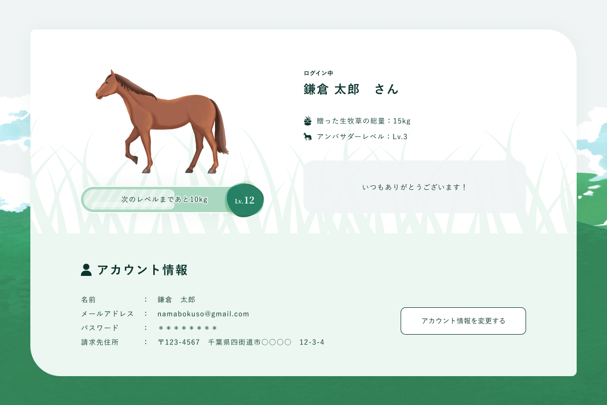 ④生牧草のプレゼントに応じてマイページが変化!