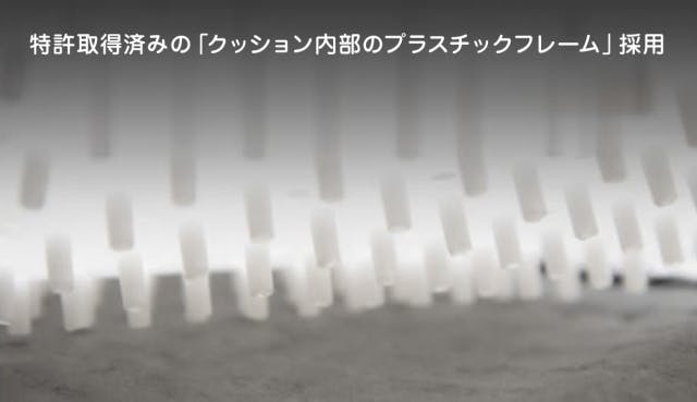 また、特許取得済みの「クッション内部のプラスチックフレーム」に付いている小さな柱が、シートを通る空気の流れを助け、風量を強くさせます。