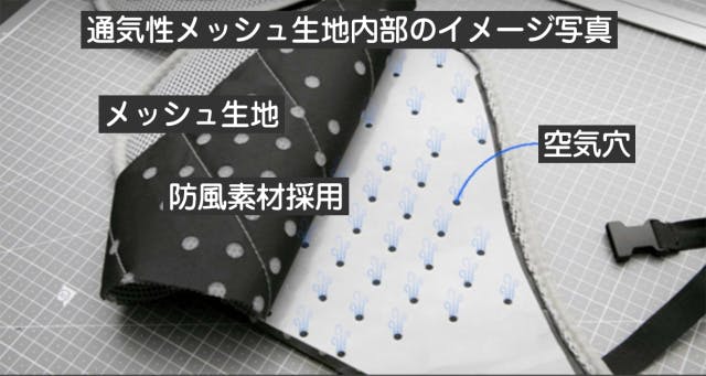 空気穴が内蔵された通気性メッシュ素材をシート素材として採用しています。