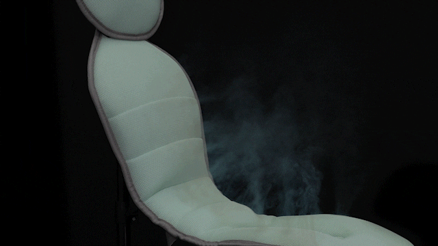 シート下部の高速ファンが周りの空気を取り込み、シート全体にその空気を送り込みます。