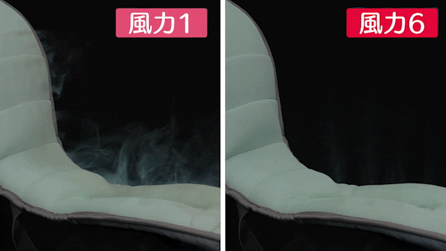 A:ファンが高速で回転する間、シートパッドから流れる風量は非常に穏やかです。