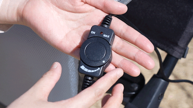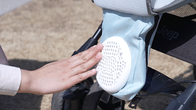熱がチャイルドシートに閉じ込められないように、通気性のある生地を通じ、一定の空気の流れが送られます。ファンの速度も、ご希望の風量に合わせて調整可能です。
