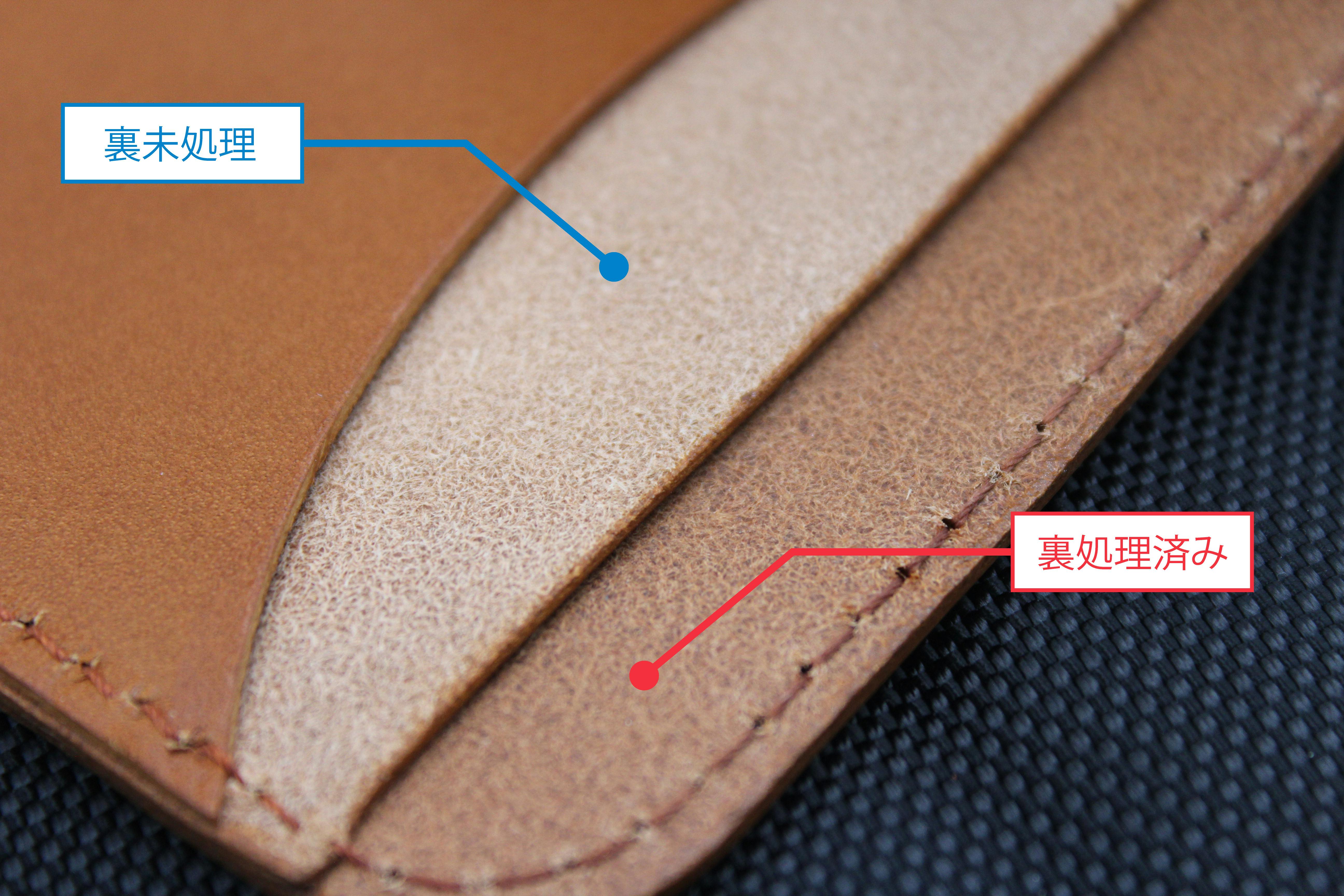 逆に内側の革はコンマ数ミリ薄くしてあるのが分かりますね!
