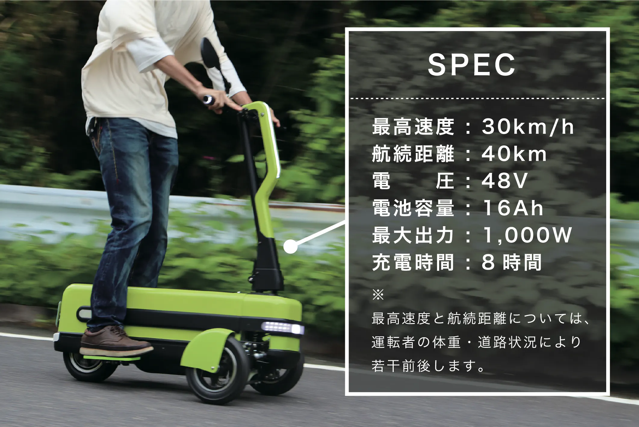 「歩くより速く、自転車よりも楽で、オートバイよりも手軽」なモビリティを目指しました。