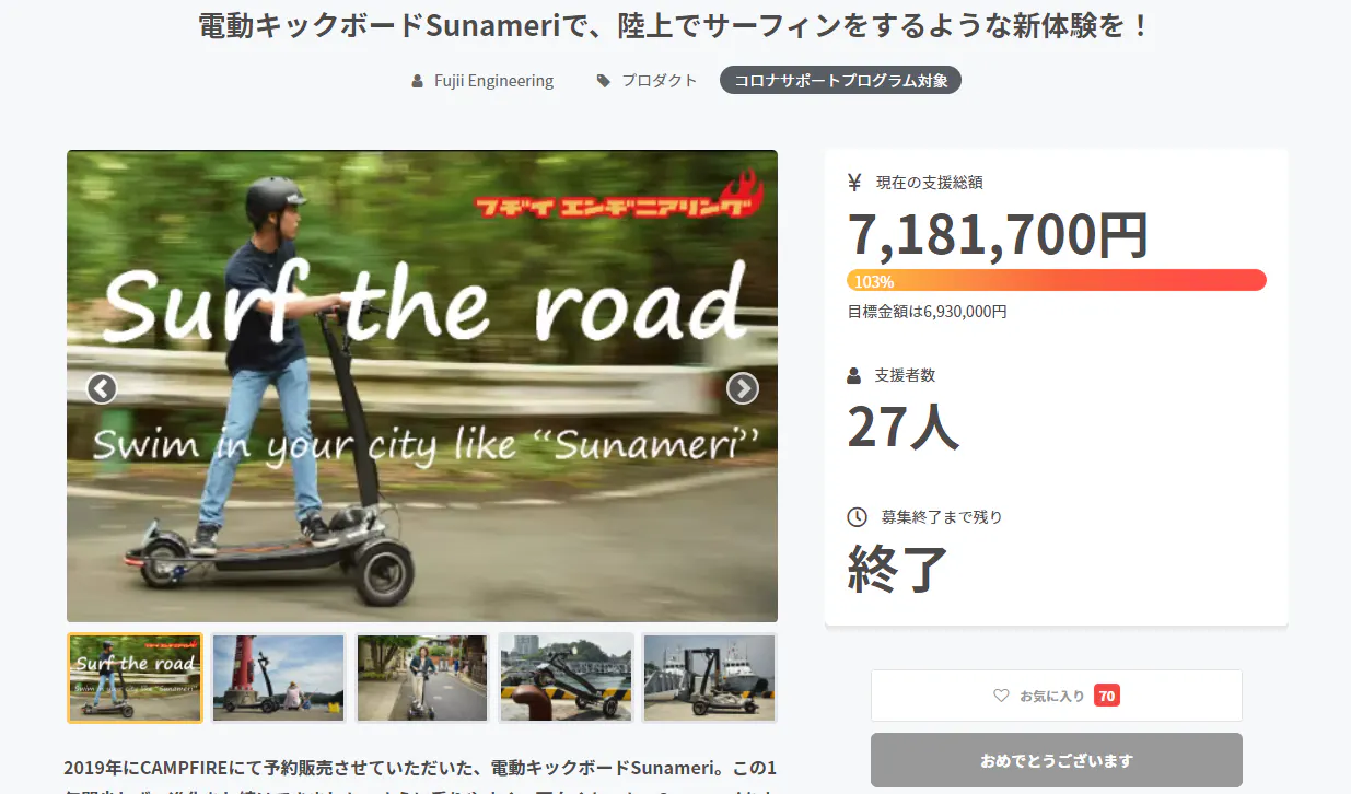 Sunameriの試作車で遊んでいたら、是非この面白さ・楽しさを他の方にも共有したいと思うようになり、クラウドファンディングに挑戦することにしました。