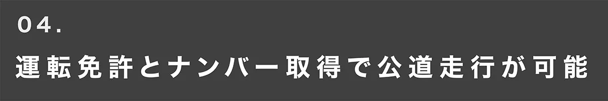 ナンバーを取得し公道を走ることができる、電動モビリティです。