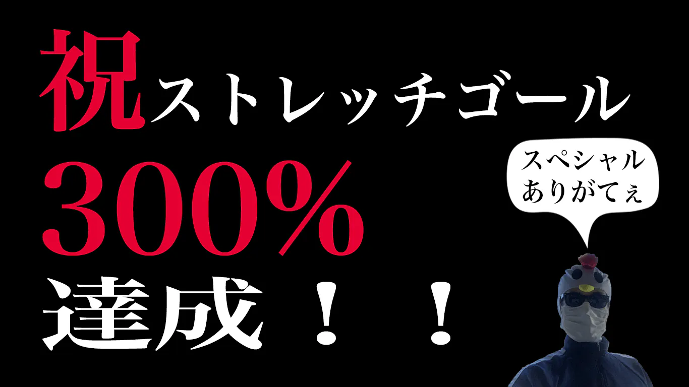 うおおおおお!!!ストレッチゴール300%達成、皆様の温かいご支援にハイパーアルティメットスペシャルありがてぇを捧げますううううう!!!
