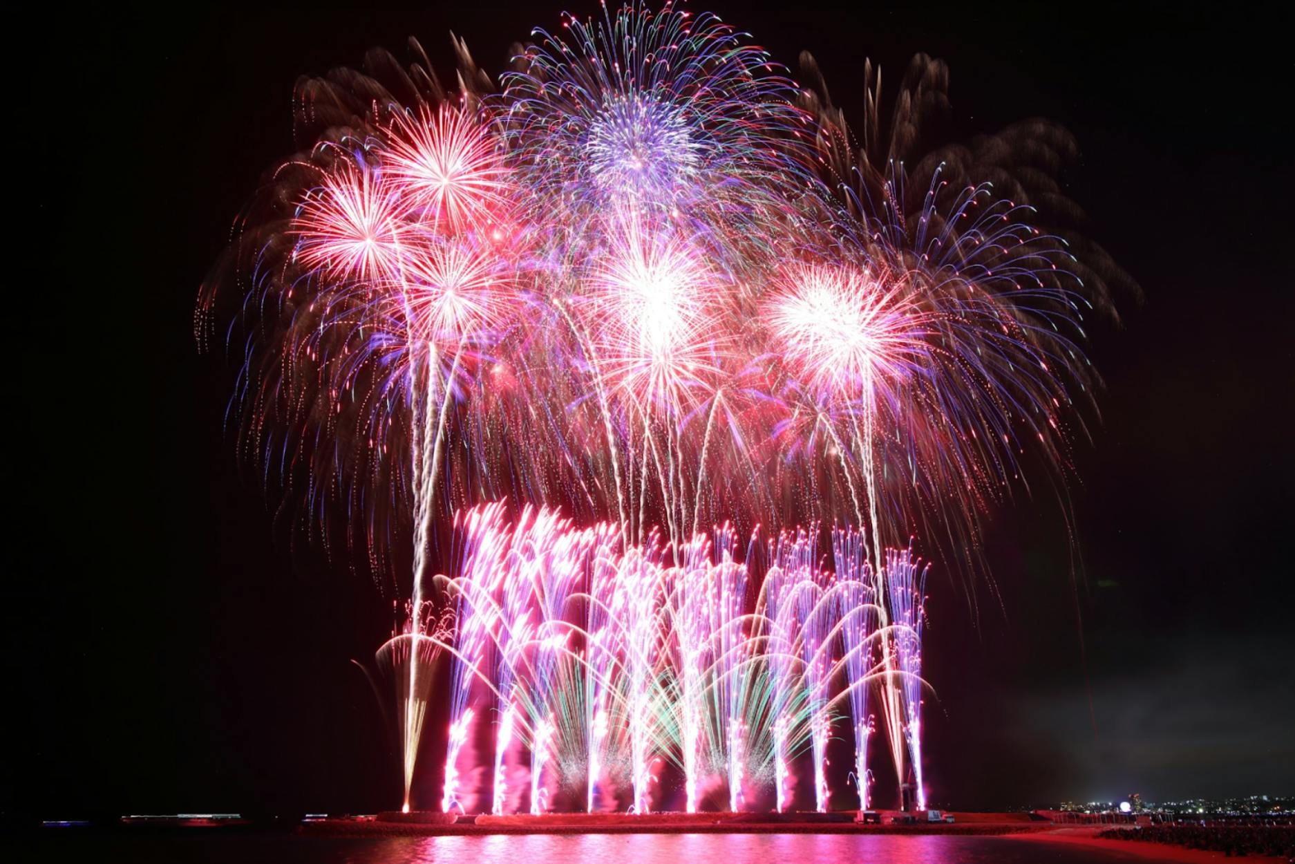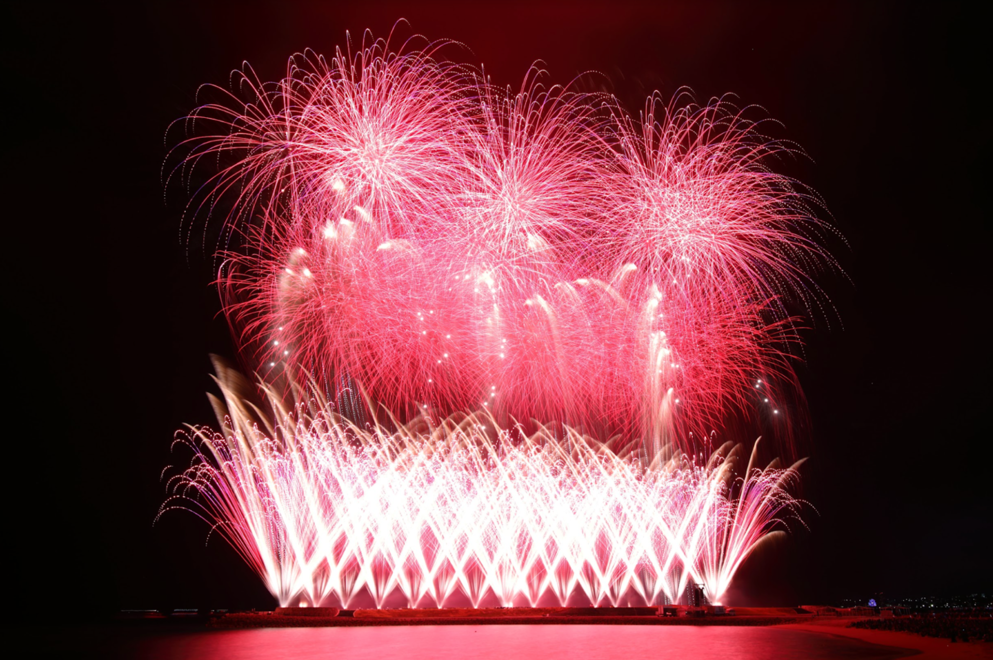 琉球海炎祭は、沖縄県に年間1,000万人の観光客に来ていただくために、そして今まで観たことのない花火を楽しんでもらうために、2004年から開催を続け、今年で19回目の開催となりました。毎年、10000発の花火と音楽の上質なコラボレーションを、多くの皆さまに楽しんでいただいております。