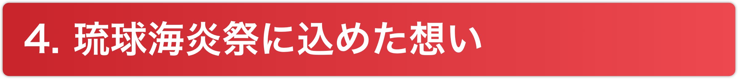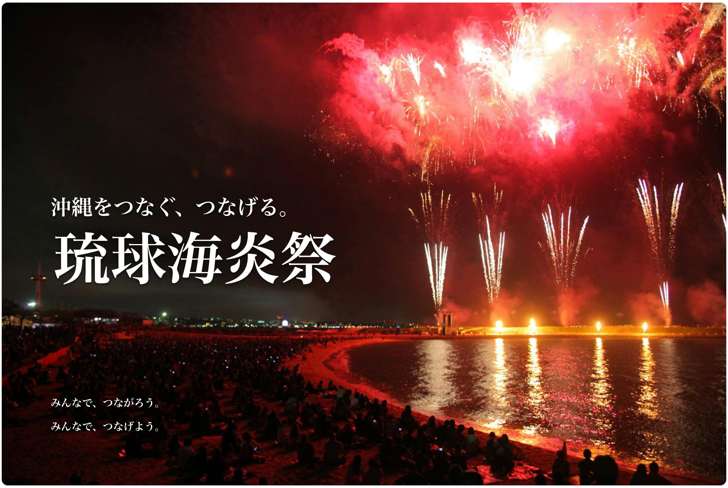 そのため、琉球海炎祭を、沖縄の観光・飲食産業や花火師たちの想いを存続させるために、そして沖縄にあの賑やかな日常を取り戻すために、琉球海炎祭を、そして沖縄を愛するすべての皆さまと手をつなぎ、未来へとつないでいきたいと考えております。