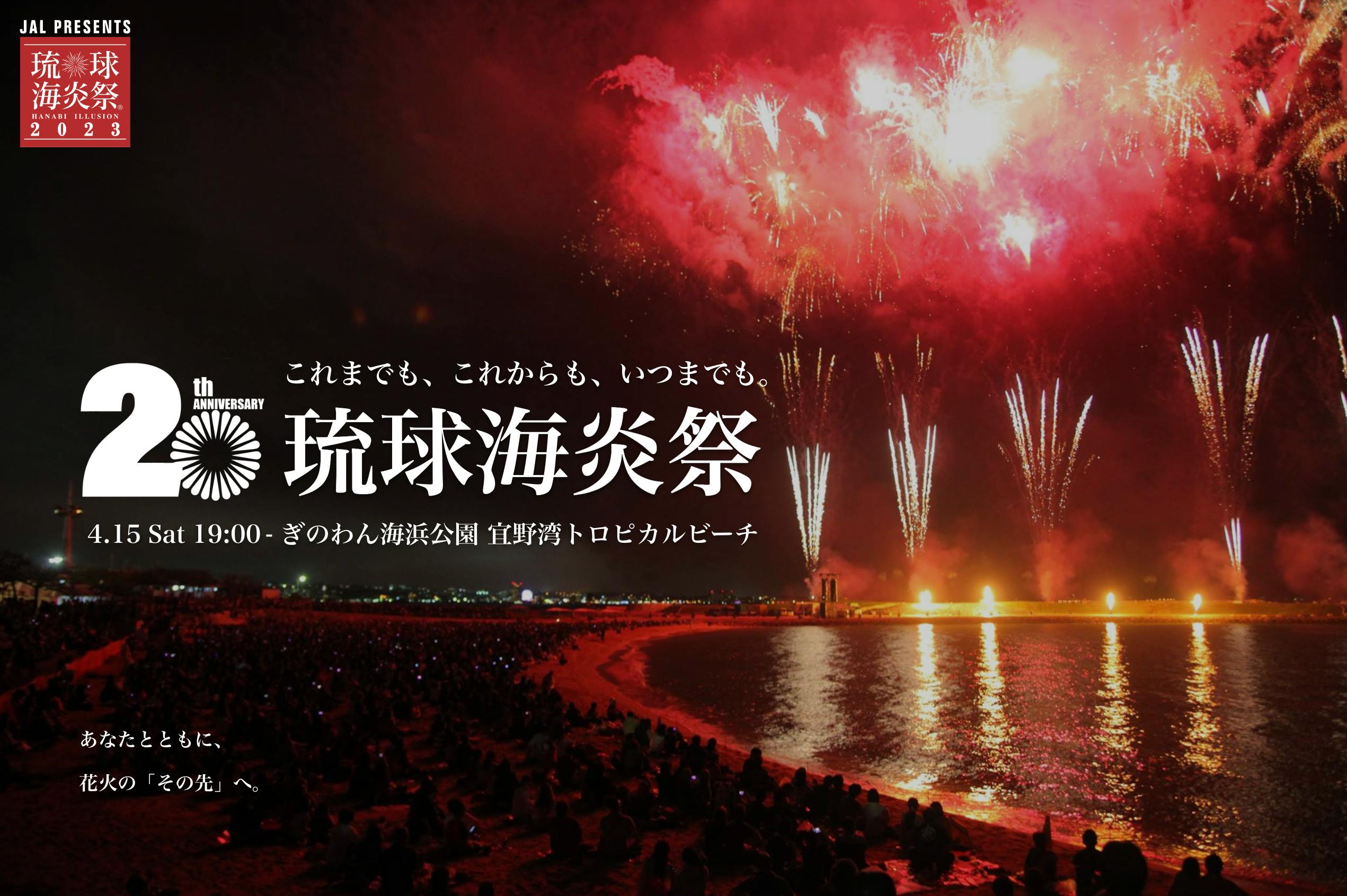 JAL presents 琉球海炎祭は、沖縄に年間1000万人の観光客に来ていただくために、今まで観たことがない花火と音楽のイリュージョンを楽しんでもらうために、2004年から18年間、開催し続けてきました。