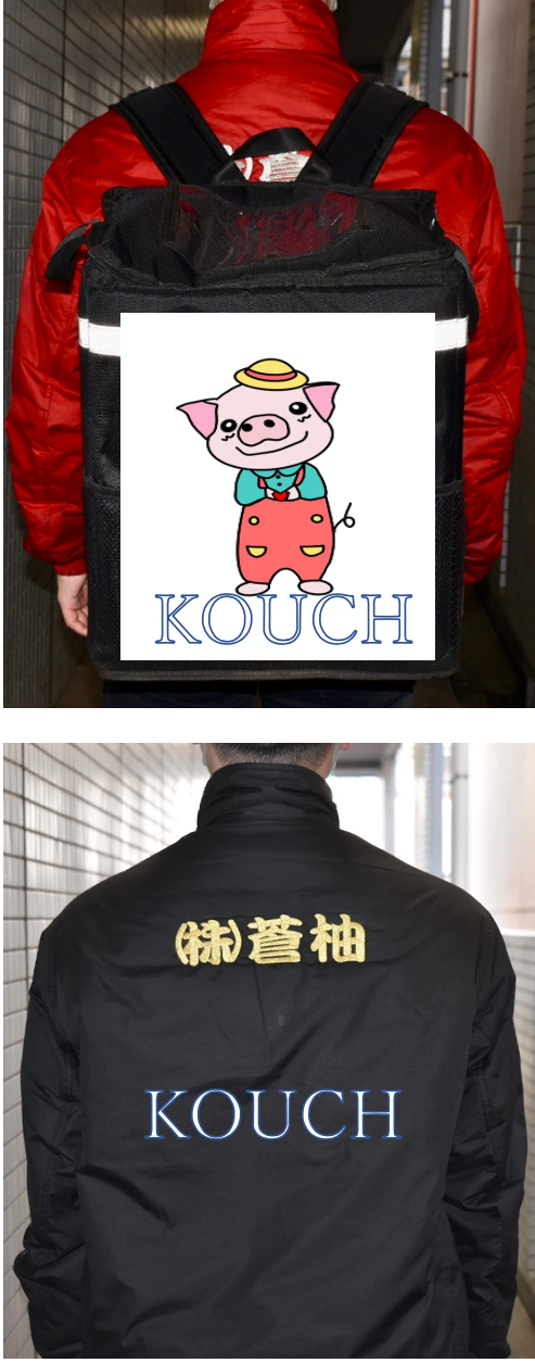 ↓デリバリーバック、ジャンパーへの広告の例です!私たちが走る広告塔となります!!