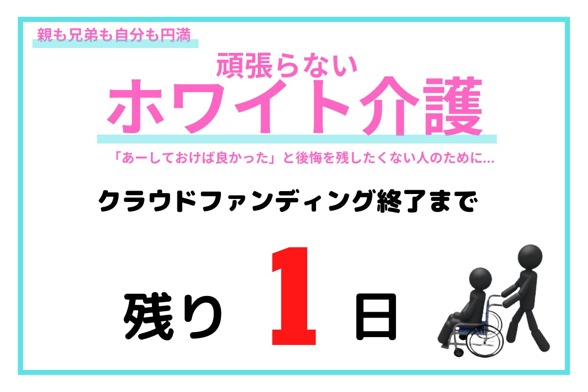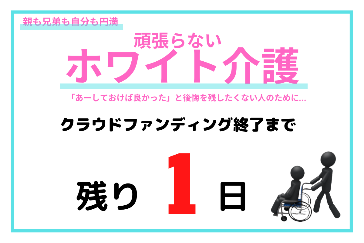 2022/07/31 07:00お世話になります。本日は、7月31日(日)いよいよ、最終日です。やっとここまで来ました。メッチャ長かった。という気分です(笑)昨日、また支援が増えました。本当に感謝です。これを書いている、0時10分頃の数字です。-------------------支援総額 577,500円進捗率 115%支援者数 145人-------------------昨日、一気に伸びました^^少しでも介護に対する不安が減る人を増やすため活動をしていきます(^^)/~~~~~~~~~~~~~~~【ホワイト介護で目指したいもの】少し大きい題名にしてしまいました(;^_^A一応、「こんな世界になったら良いなー」というものがあります。それは、「あーすれば良かったと後悔をしない世界」です。介護って、そんな簡単ではないです。そして、未来がないです。親はこの先、衰えていくばかり。復活していくことはほとんどありません。出来ないことばかりが増えていく。それを見ているのは本当にツライ。思わぬ決断を迫られる場面も増えてきます。「これで良いんだろうか?」「この方法しかないのかな?」「なんて自分はひどい人間なんだ」なんて思いながら決断をすることも多いです。何が正解なのか?何が間違っているのか?まったくわかりません。自分にとっての正解は、他の関係者にとっては不正解。なんてことはよくあります。なので、常に迷い悩み、そして後悔もします。その「後悔をする」という部分ココを減らしたいのです。なくしたいのです。「自分が出来ることはすべてやって、この方法になった」そう思って、行動して欲しいんです。そうすれば、自ずと争いも減るのではないか?親子兄弟が仲良いままでいられるのではないか?そう思っています^^誰しも老化を止められません。衰えていくのは確実です。誰もが通る道ならば。その道が争いのない道になればいいなーと。こういう風に思っています^^~~~~~~~~~~~~~~~PS.あとは、、、もう少し介護の地位が上がればいいなーと。介護は奉仕。無料で当然。こういう考えの人は多いです。これだと、発展はしていかない。今までの状況と変わらない。もっと積極的に学び。そして努力をしていく。介護は重要で価値があるもの。こういう風になっていけばいいなと思います^^ もっと見る