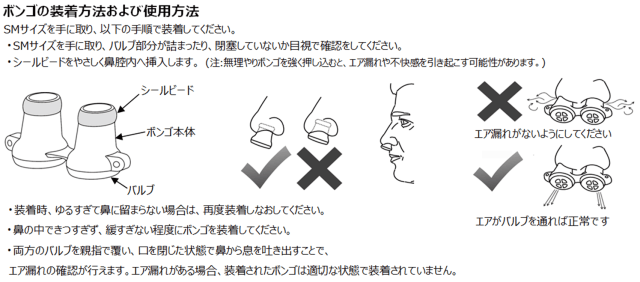 *アメリカ本国においてはスターターキットの内容物としてSサイズ、Mサイズ、Lサイズ、XLサイズの4ヶが同梱されております。しかし、日本にて長い間調査をした結果、日本人の鼻のサイズにはMサイズ、Lサイズ、XLサイズ の3種は大きすぎて使用が困難と判明しているため、特別にSサイズを4ヶ同梱した商品を日本の皆さまにはお届けしております。つきましては本商品であるボンゴ スターターキットにはSサイズのボンゴが4ヶ入っております。