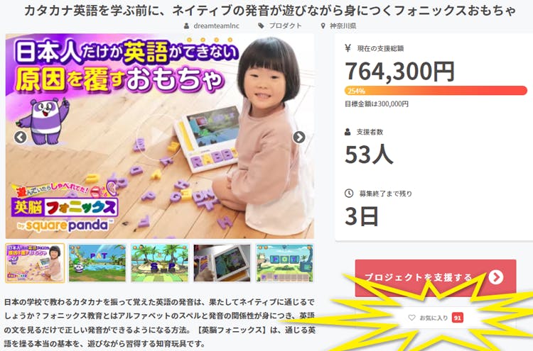 2022/07/01 17:00みなさまこんにちは! 有限会社ドリームチームの担当、菊谷です。このところ続いている各地での猛暑や集中豪雨で体がおかしくなりそうですね、、、。そのような中、節電を求めれて、クーラーの使用を控えめにして体調を崩してしまっては元も子もありません。各ご家庭においては”電気代の節約” の思いで節電を実行したいものです。さて、本日は初めてこちらのページにいらして下さった方々、そして現在お気に入り登録をされていて、ご支援購入を検討中の皆様へのリマインダーです!!!今回の特別価格でのキャンペーンは7月15日まで、つまりあと2週間で終了となります!!この夏はようやく帰省や旅行がしやすくなって来ましたが、ご自宅で夏休みを過ごされるご家庭では、お子さまたちをどのように過ごさせたらよいかが悩みどころですね。そんなときのお助けにもなるのがこの英脳フォニックスです!さあ英語のお勉強をさせよう!と意気込むのではなく、できれば親子で一緒に遊んでいただければより楽しいものとなります。変にカタカナ英語に慣れてしまっている親世代と違って、お子さまは繰り返し目と耳と手を使って知る「本当の」発音を、いとも簡単に体に入れてしまうことを実感できるはずです。じいじ、ばあばのところに持って行って披露するのもよし、兄弟で遊ぶのもよしです。是非この夏の遊び道具の一つとして英脳フォニックスをご検討いただけると幸いです。 もっと見る