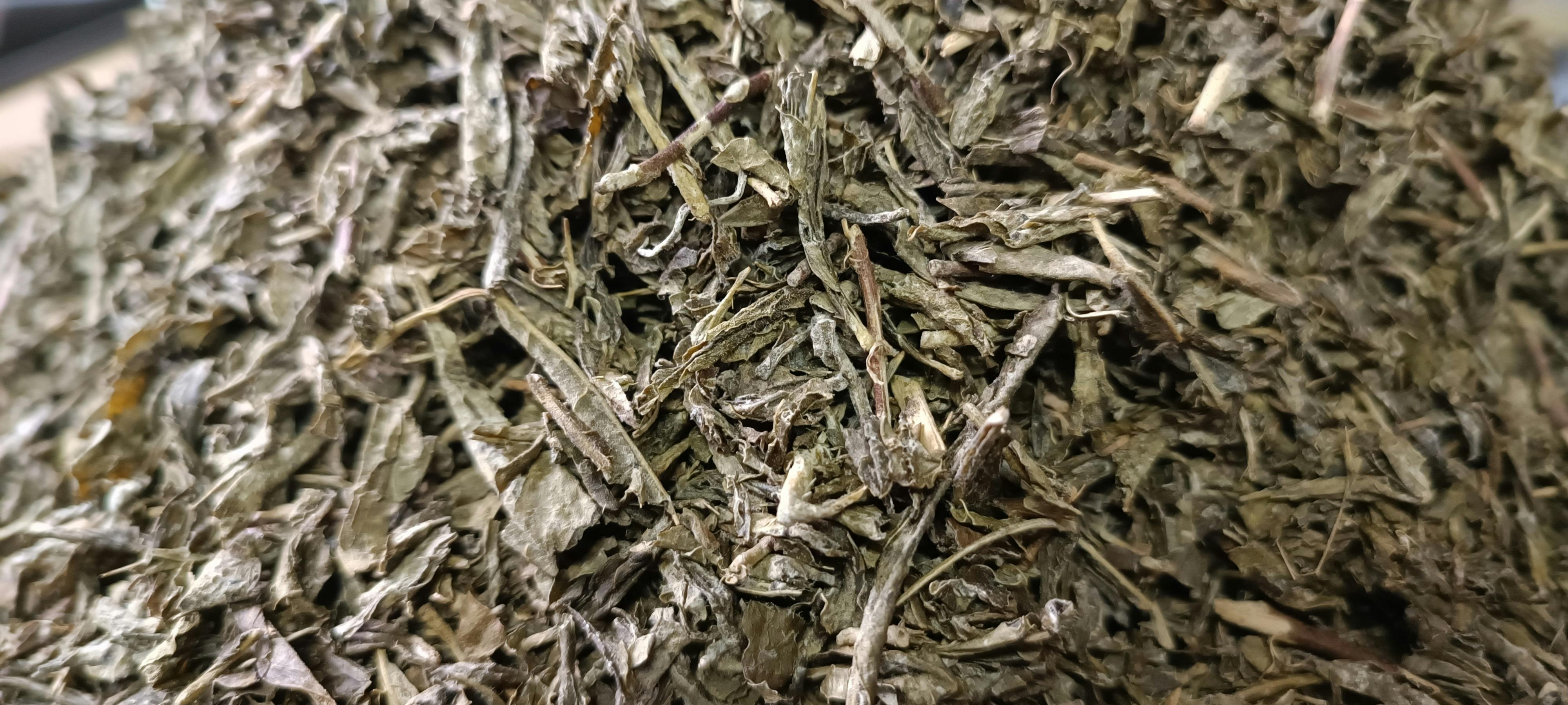 麹菌発酵茶の試作品。白い部分が麹の菌糸。