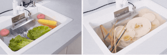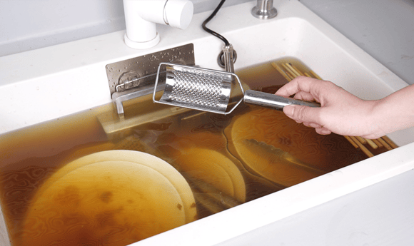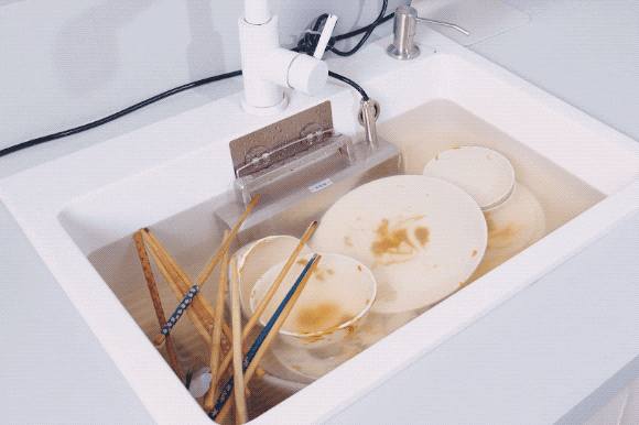 水を貯めたシンクに使い終わったお皿や調理器具を入れ、スイッチをONにするだけ!
