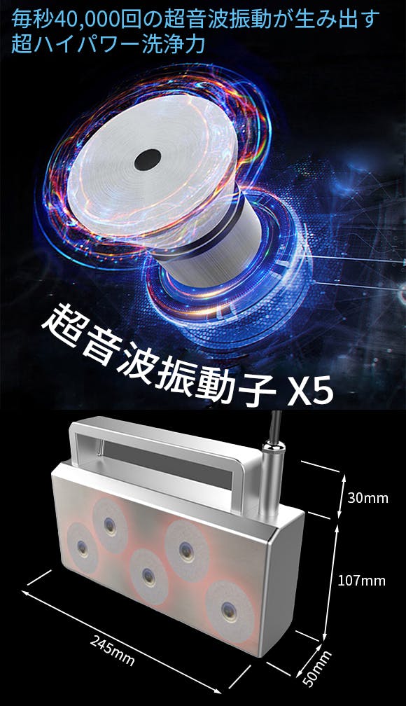 この5の振動子から起きる高速の振動、それによって生じる気泡によってあらゆる汚れを落とすのです。