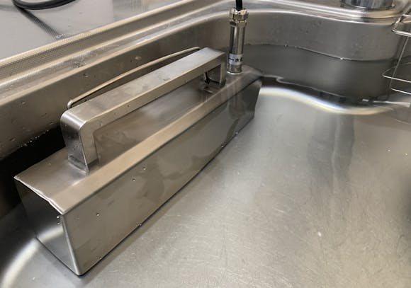 A4.1.超音波発生装置をシンクの中にいれ、水を貯める