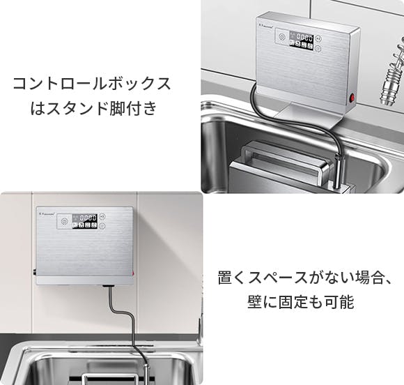 コントロールボックスと超音波発生装置は、あらゆるシンク、環境に置けるように考えられています。