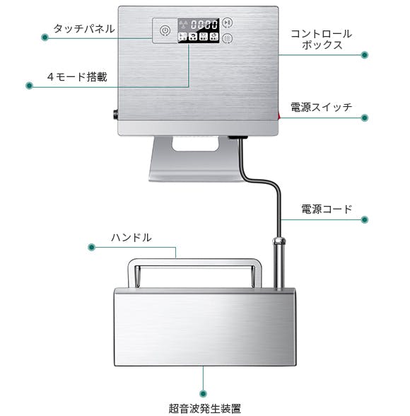 コントロールボックスと超音波発生装置を繋ぐコードの長さ: 1m