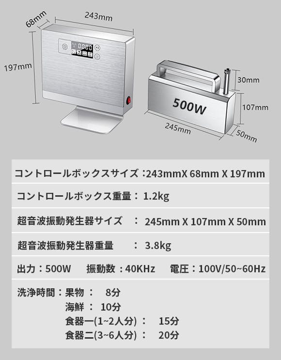 超音波振動発生器サイズ(245mm × 107mm × 50mm)は小型なので、