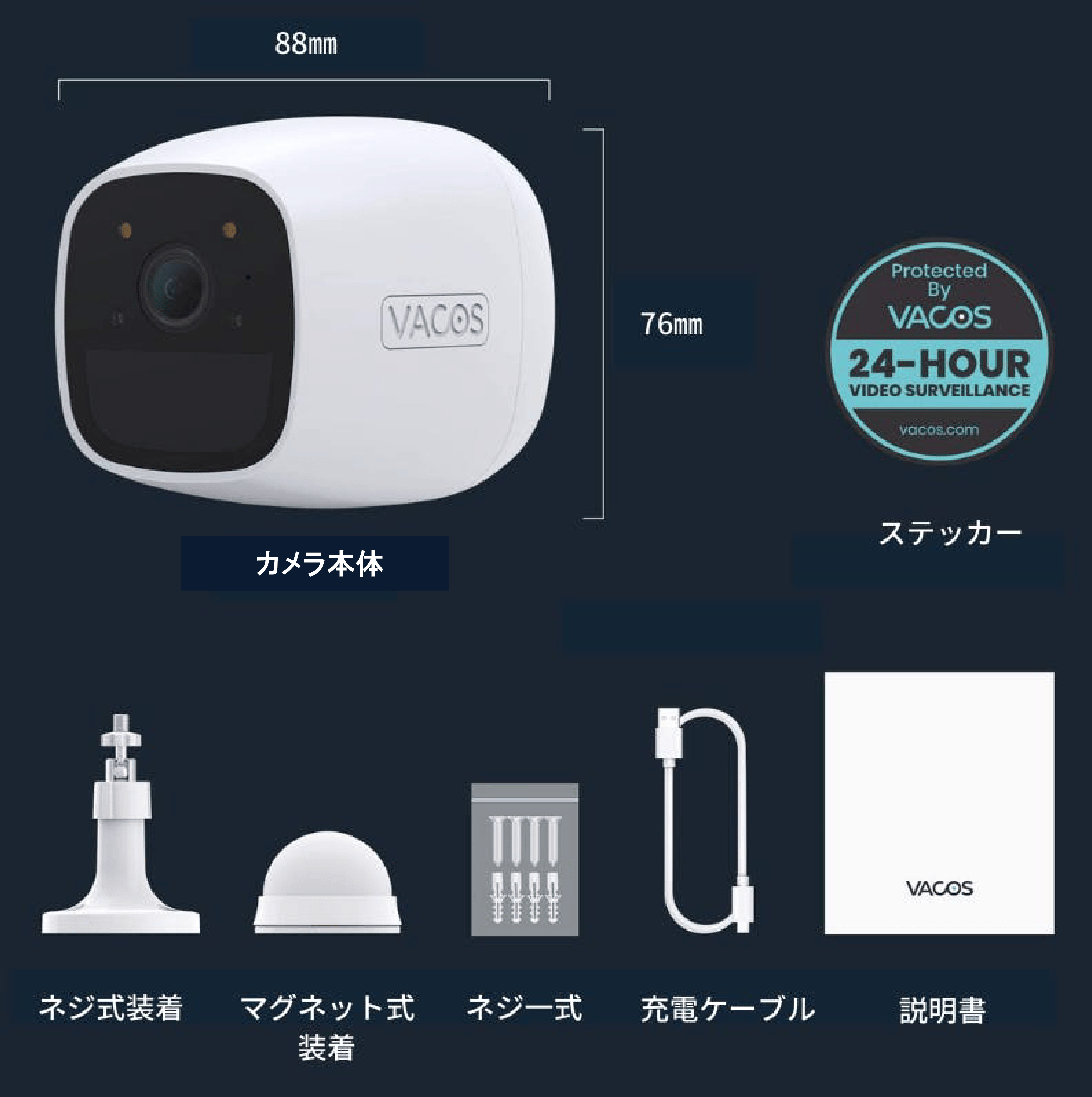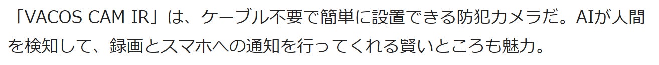 今回紹介させていただく『VACOS CAM IR』は、工事不要が不要ですので、設置もスマホとの連携も本当に簡単にできます!