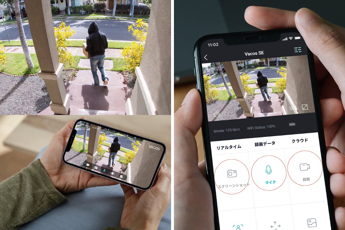 人間を検知したら専用アプリ『Vacos Smart』を通して、瞬時にスマホに通知されます。