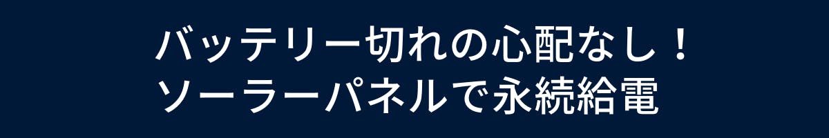 でも、付属のソーラーパネルをつなげるだけで、永続的に給電します。