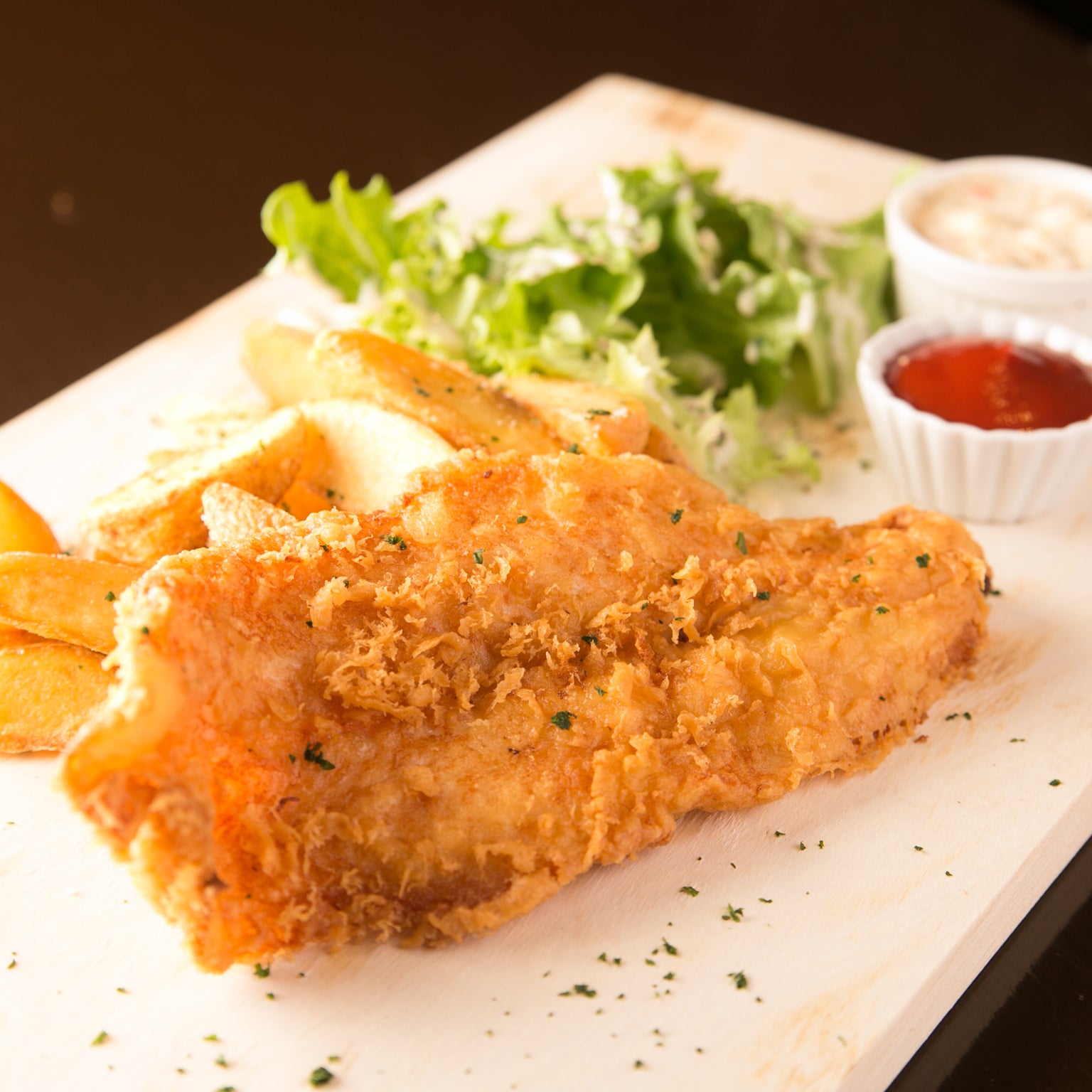 人気ナンバー1の「フィッシュ&チップス」は本場イギリス仕込みのビッグサイズ!