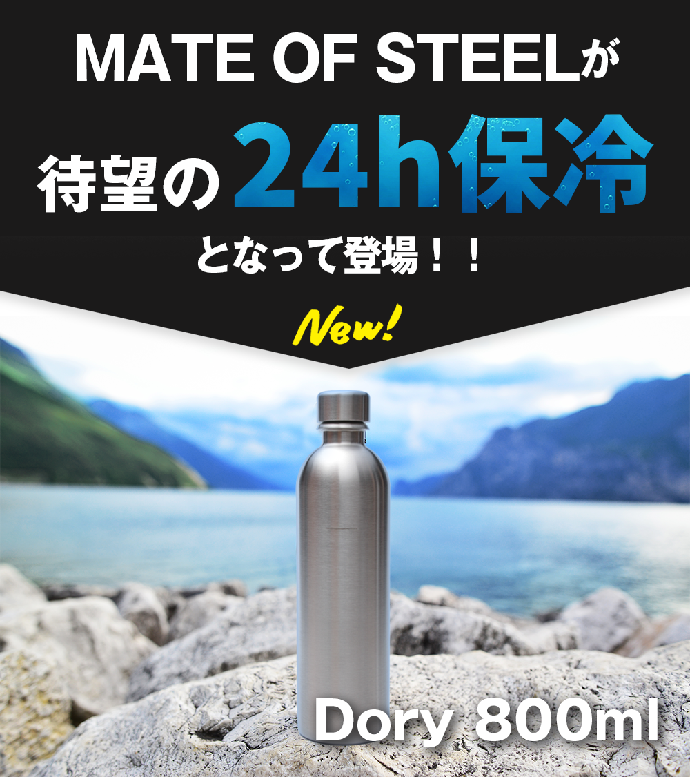 この度、待望の「24時間保冷」となってバージョンアップしたのが【MATE OF STEEL Dory 800ml】です。